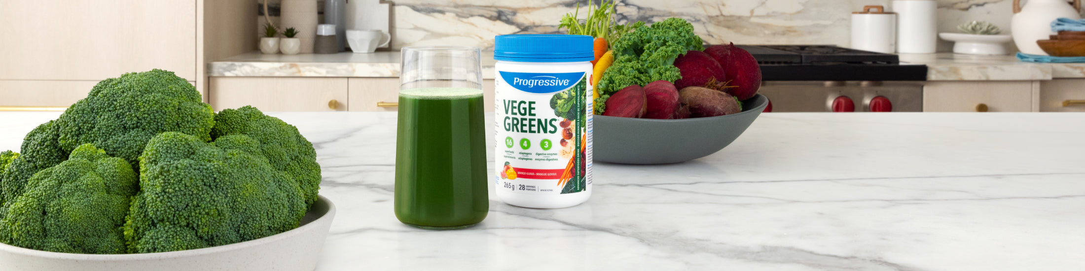 Complete with a blend of important veggies like beet root, kale, spinach, and spirulina.